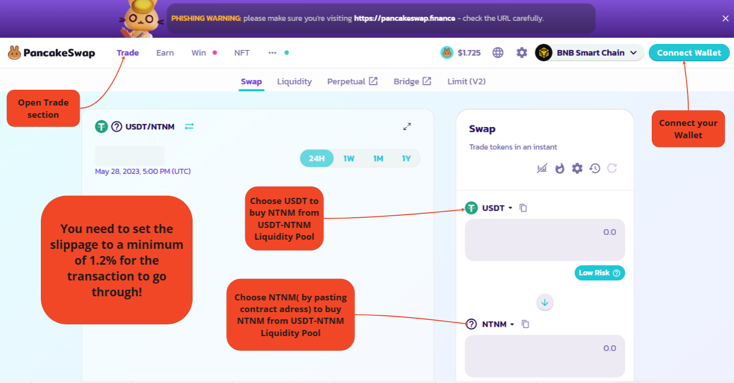 ***-*** where investors can swap **USDT&#x20;*****& $Nitranium*** tokens in liquidity pool. [**https://pancakeswap.finance/swap?chain=bsc\&inputCurrency=0x55d398326f99059fF775485246999027B3197955\&outputCurrency=0x482c9Eef74Fd7a642FDCF9B7B2482d7BE50Ed044**](https://pancakeswap.finance/swap?chain=bsc\&inputCurrency=0x55d398326f99059fF775485246999027B3197955\&outputCurrency=0x482c9Eef74Fd7a642FDCF9B7B2482d7BE50Ed044)
