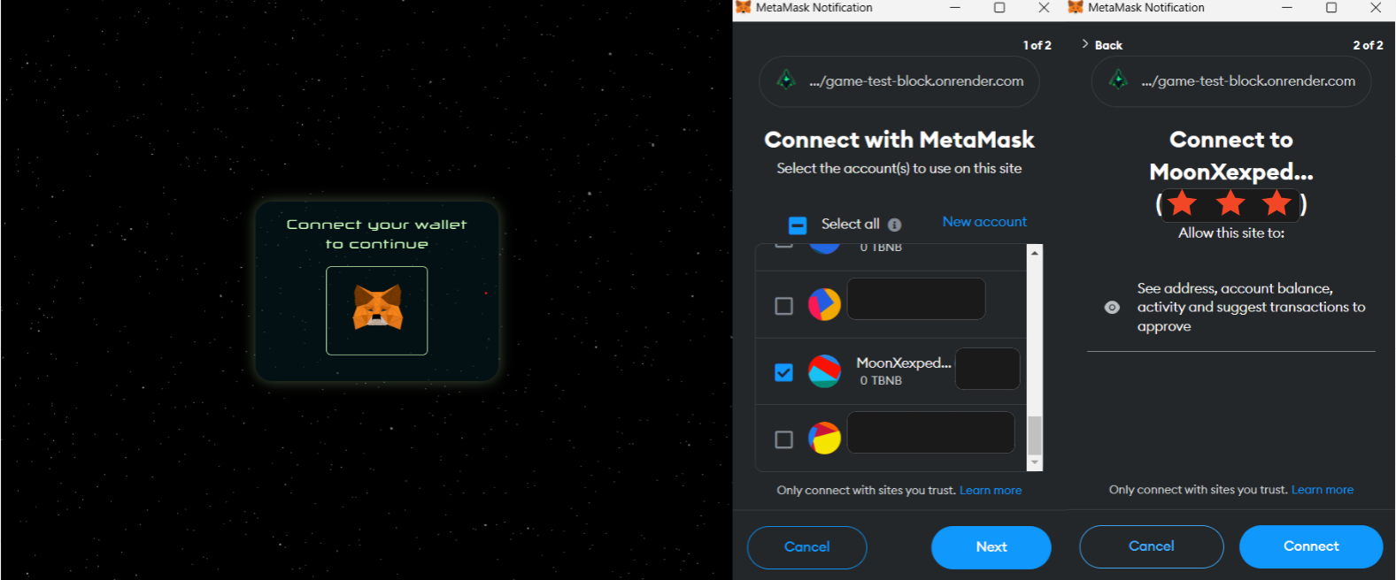 #### <mark style="background-color:purple;">MetaMask wallet needs to Connect with</mark>&#x20;